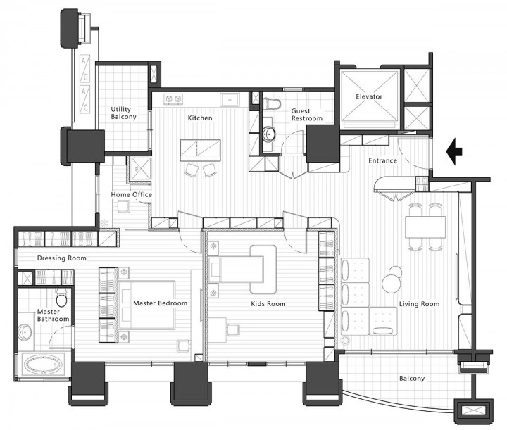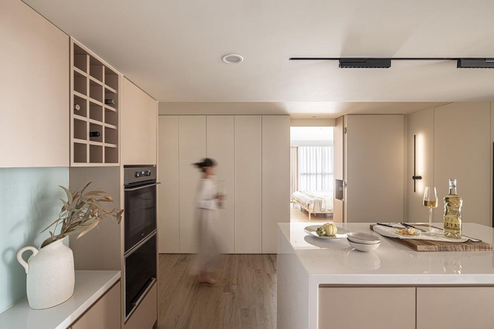 152㎡,兩房兩廳的格局,裝修構(gòu)建流暢線條,削弱橫梁的壓迫與阻滯感,隱于無形的收納手法,更是切中主人所需,不顯厚重的方式,整合了展示與收納的功能,一舉兩得。