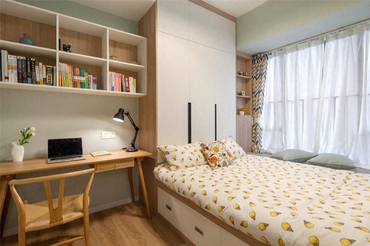 所以床不要貪大,一個(gè)人使用,最多1.5m就夠了。當(dāng)然,更建議選1.2m的單人床。省出來(lái)的空間,可以給孩子放個(gè)書桌或者做成游戲區(qū)。