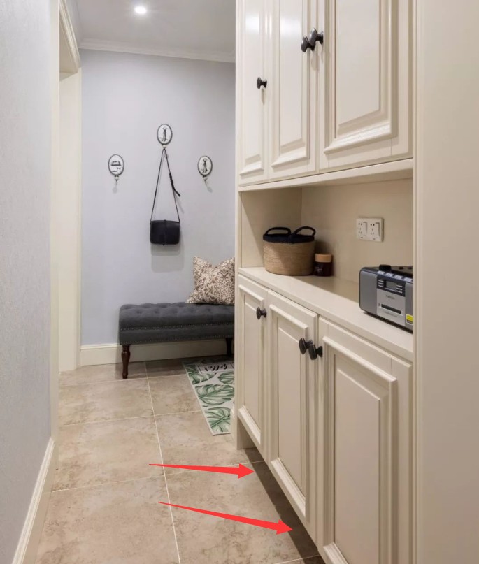 對(duì)于玄關(guān)來說,通常都會(huì)建議大家做一個(gè)頂天立地式的玄關(guān)柜,不僅解決放鞋的問題,還能最大化地收納家中的雜物。在做玄關(guān)柜的時(shí)候,很多人沒考慮到一個(gè)細(xì)節(jié),那就是鞋柜的底部最好留個(gè)縫隙。