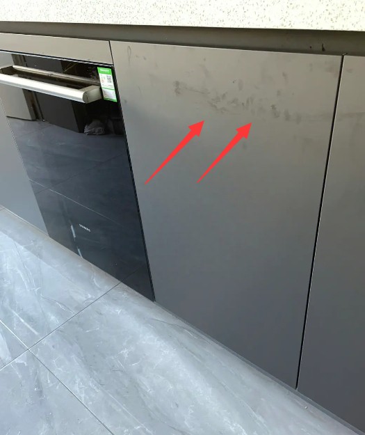廚房油污大,千不該萬不該用膚感膜柜門,好看是好看,但是特別容易沾油污留水痕。每次做完飯洗碗擦灶臺(tái)之余還多了個(gè)步驟去擦柜門,簡直就是自己找累。