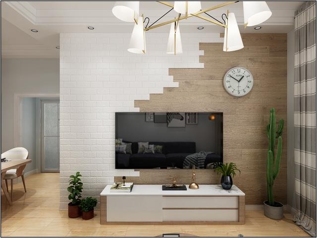 4. 如果預(yù)算不足,就選擇大白墻,這樣環(huán)保、實(shí)用、裝修簡(jiǎn)單。如果覺(jué)得單調(diào),可以在電視機(jī)的上下方掛一些橫幅的掛畫(huà)等裝飾品。