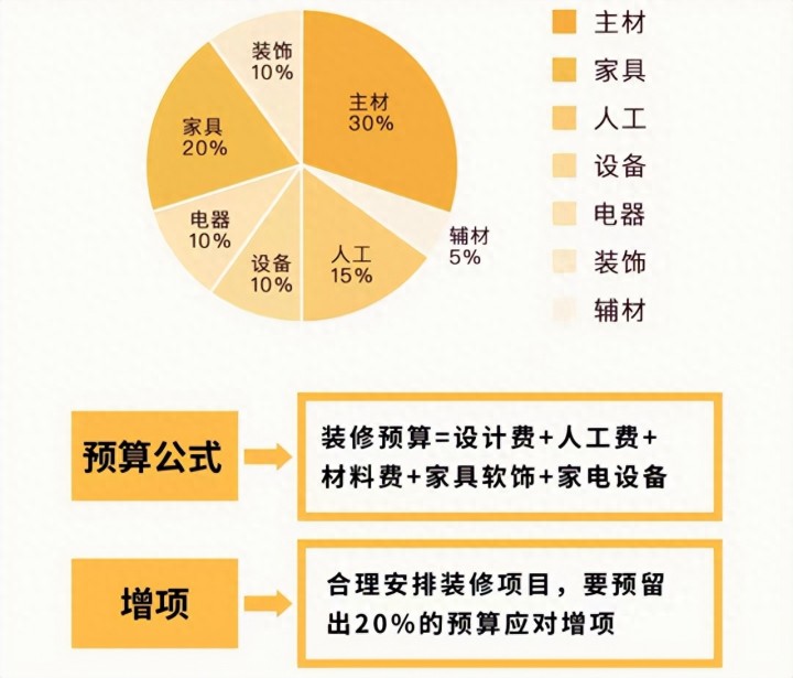 在解答這個(gè)問(wèn)題之前,先帶大家了解一下裝修預(yù)算分配的構(gòu)成。