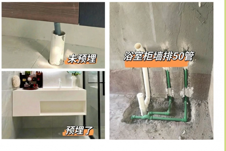 二、浴室柜預(yù)埋線(xiàn)管:浴室柜的下水管也是可以隱藏的,就是很多經(jīng)常說(shuō)的墻排。墻排可以最大程度的利用空間,同時(shí)墻排更加美觀。目前墻排的下水 方式很多,建議設(shè)計(jì)具有漏水口的,方便浴室柜下的水排出,也可以進(jìn)行檢修。