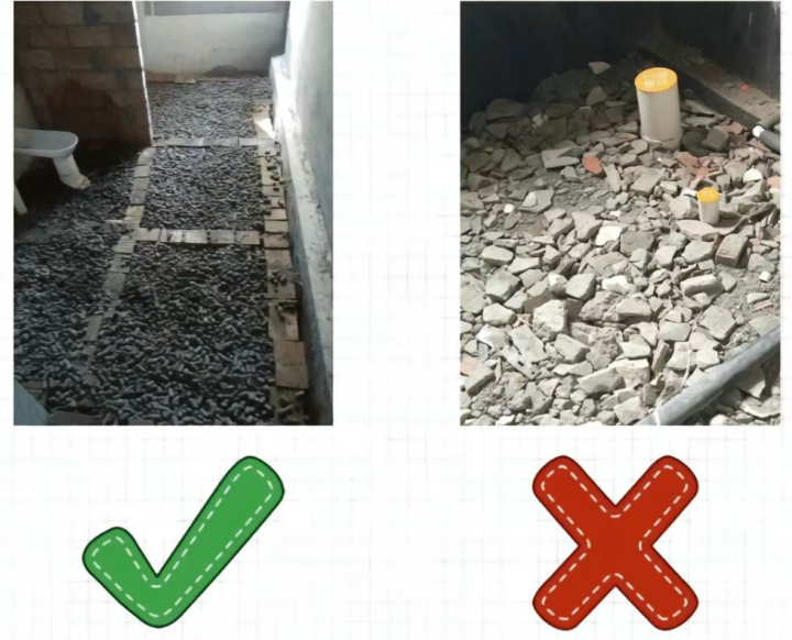 6.衛(wèi)生間回填要在場,一定要用陶粒填充不能用建筑垃圾。陶粒是一種質(zhì)輕的材料,能減輕衛(wèi)生間的整體重量負(fù)荷,降低對建筑結(jié)構(gòu)的壓力。它具有良好的吸水性和透氣性,能吸收多余水分并保持一定的干燥度,減少潮濕環(huán)境帶來的不利影響,降低滲漏的風(fēng)險。同時,陶粒內(nèi)部多孔,有一定的隔音效果,能減少排水等聲音的傳遞。此外,陶粒化學(xué)性質(zhì)穩(wěn)定,不會輕易發(fā)生化學(xué)反應(yīng)而變質(zhì),耐久性較好,能夠長期保持良好的性能。并且,陶粒的顆粒大小均勻,易于施工操作和保證回填的均勻性。