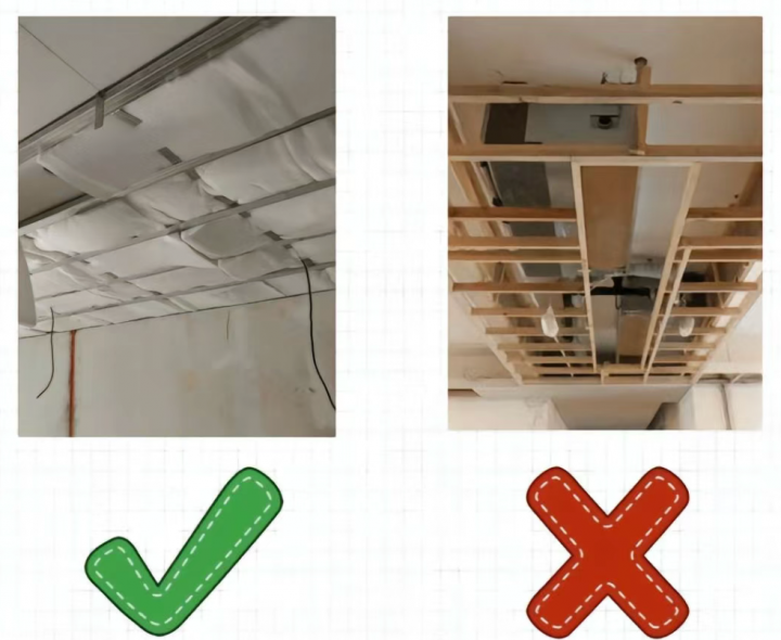 3.吊頂一定要在場,檢查是否有加隔音棉。一是為了有效阻隔聲音的傳播??梢越档蜆巧匣顒赢a(chǎn)生的腳步聲、物體掉落聲等噪音對室內(nèi)的影響,提升室內(nèi)環(huán)境的安靜程度,尤其對于居住在公寓樓等環(huán)境中的人來說非常重要。二是增強室內(nèi)的聲學(xué)效果。減少聲音的反射和混響,讓聲音聽起來更加清晰、舒適,改善室內(nèi)的聽覺感受。三是起到一定的保溫隔熱作用。在一定程度上減少室內(nèi)外熱量的交換,保持室內(nèi)溫度相對穩(wěn)定,同時也能在一定程度上節(jié)省能源。