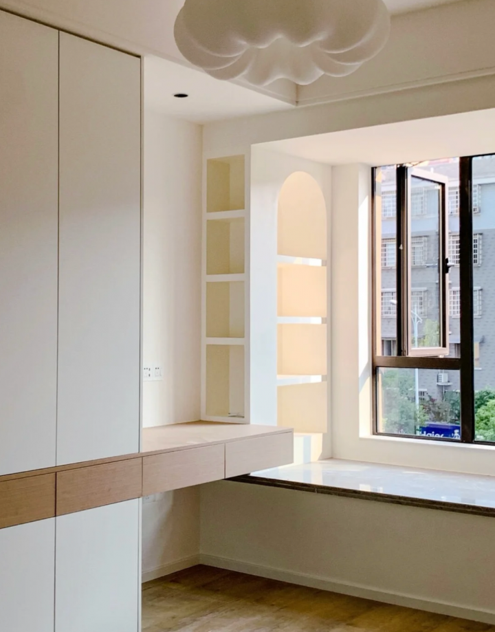 現(xiàn)在精裝房的大多數(shù)臥室都有飄窗,一般是贈送或半贈送的,它也是極易被忽視的小空間,雖然只有兩平米,但是不要小看,規(guī)劃好了可以增加翻倍的收納,變廢為寶,不要太劃算。