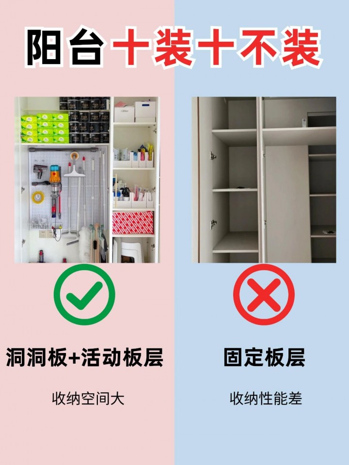 洞洞板和活動板層可以根據(jù)需要靈活調(diào)整,增加儲物空間的同時,也能保持陽臺的整潔。固定板層雖然可以提供固定的儲物空間,但靈活性較差,不易適應不同家庭的需求。