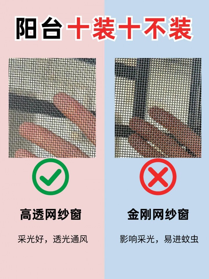 3. 選高透網(wǎng)紗窗;不選金剛網(wǎng)紗窗
