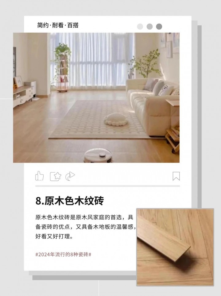 小青庭提醒,2024年流行的這8款瓷磚顏色,不僅在視覺上滿足了人們對(duì)美的追求,更在實(shí)用性上考慮了不同家庭的需求。無(wú)論是追求簡(jiǎn)約現(xiàn)代的風(fēng)格,還是溫馨自然的原木風(fēng),這些瓷磚都能為家居空間增添一份獨(dú)特的魅力。隨著家居裝修的不斷進(jìn)步,我們有理由相信,這些流行趨勢(shì)將會(huì)引領(lǐng)更多的家庭走向個(gè)性化和舒適化的道路。