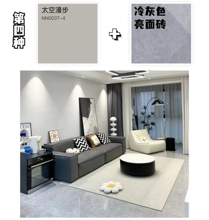 冷灰色亮面磚以其獨特的光澤和現(xiàn)代感,適合追求個性化設(shè)計的您。搭配太空漫步的乳膠漆,整個空間仿佛置身于浩瀚的宇宙之中,充滿了無限的想象與探索的空間。太空漫步的深邃與冷灰色的現(xiàn)代感相結(jié)合,為家居空間帶來了一種前衛(wèi)與科技感。這種配色方案非常適合現(xiàn)代風(fēng)格的客廳或工作室,能夠激發(fā)創(chuàng)意與靈感。