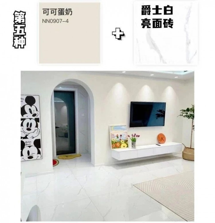 爵士白亮面磚以其純凈的白色和高雅的質(zhì)感,是家居裝修中的常青樹。當(dāng)它與可可蛋奶的乳膠漆相結(jié)合時,整個空間散發(fā)出一種優(yōu)雅而溫馨的氛圍??煽傻澳痰娜岷团c爵士白的純凈相互映襯,為家居空間增添了一抹溫暖與舒適。這種配色方案適合餐廳或臥室,能夠讓人在用餐或休息時感受到家的溫馨與和諧。