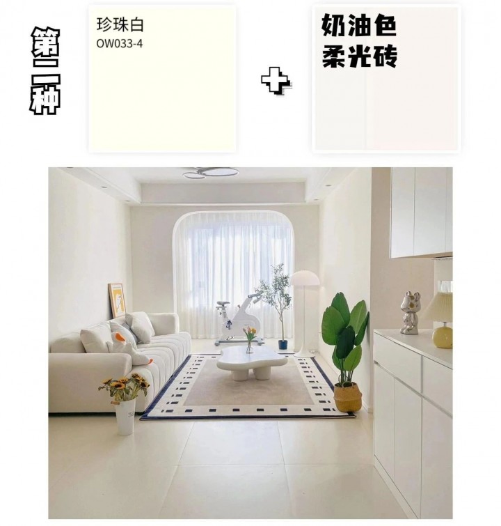 奶油色的柔光磚以其柔和的色澤和溫潤的質(zhì)感,給人一種溫馨舒適的感覺。當(dāng)它與珍珠白的乳膠漆相結(jié)合時,整個空間仿佛被一層溫暖的陽光包圍。珍珠白的光澤與奶油色的柔和相得益彰,為家居空間增添了一抹溫馨與寧靜。這種配色方案適合臥室或兒童房,能夠營造出一個放松和安心的休息環(huán)境。