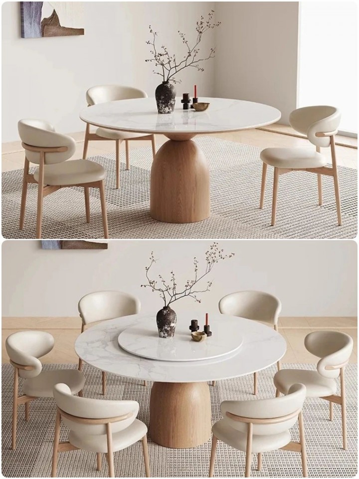 ▲其次是圓桌,在中國傳統(tǒng)文化中,圓桌象征著團(tuán)圓與和諧。圓桌能容納更多人就餐,即使有客人來訪,也能避免冷落。旋轉(zhuǎn)巖板設(shè)計方便清潔,且底部結(jié)構(gòu)穩(wěn)固,不占用空間。