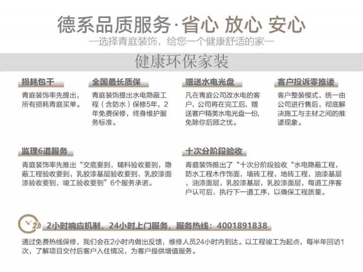 不僅如此,青庭裝飾引入了德系建材,這些高品質(zhì)材料以其卓越的性能和環(huán)保標(biāo)準(zhǔn),為家裝質(zhì)量提供了堅(jiān)實(shí)保障。從環(huán)保的板材到經(jīng)久耐用的五金,每一種材料都經(jīng)過(guò)層層篩選,只為提升業(yè)主的生活品質(zhì)。