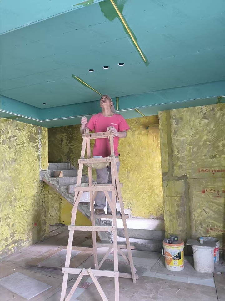 石膏板拼接處是開裂高發(fā)區(qū),青庭會采用 “V 型槽拼接 + 嵌縫帶加固” 工藝:先將石膏板拼接處切割出 V 型槽,填入環(huán)保嵌縫石膏后,粘貼抗裂嵌縫帶,再進(jìn)行面層批刮,從工藝上減少熱脹冷縮導(dǎo)致的開裂風(fēng)險。此外,安裝完成后,青庭還會對吊頂邊緣與墻面銜接處做圓弧處理,既提升美觀度,又避免后期磕碰掉角。