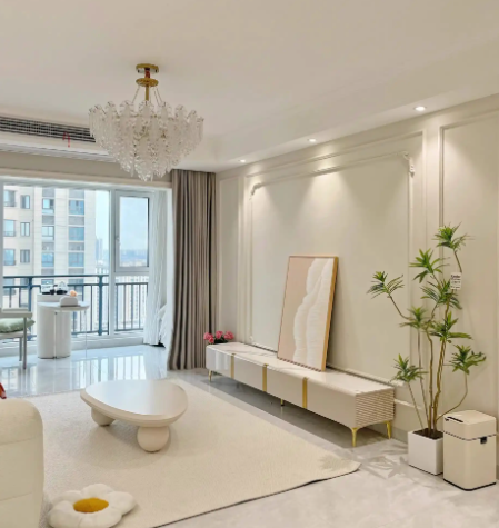 首先,色調(diào)別選 “純奶油白”,帶點灰度的暖白才是精髓。比如立邦 “奶咖色”、多樂士 “象牙白”,這類顏色在自然光下是柔和的米白色,陰天也不會發(fā)灰發(fā)冷,反而像加了一層 “奶霧”,自帶溫潤感。避開高飽和的黃、過冷的白,前者容易顯膩,后者會打破奶油風(fēng)的暖調(diào)基底,讓空間顯得生硬。
