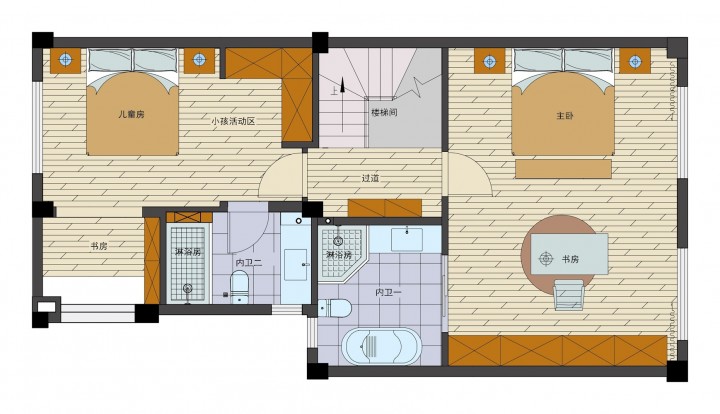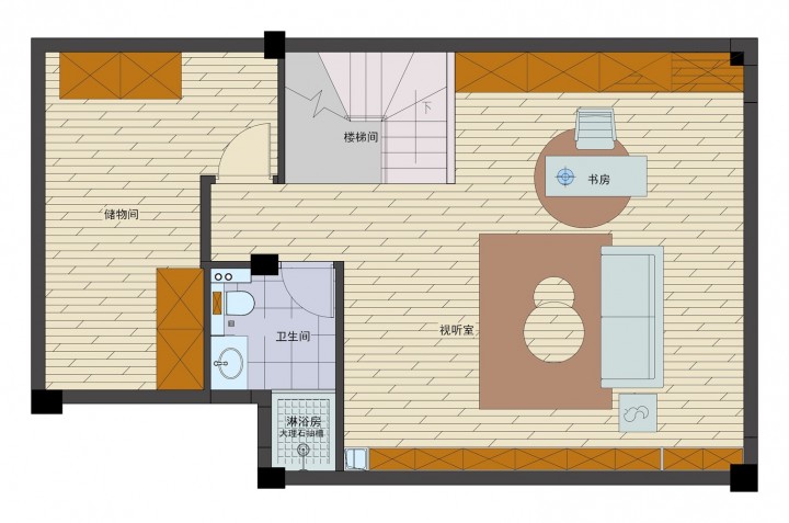 三層設(shè)置了影音室和書房,明亮的色彩讓人冷靜思考。