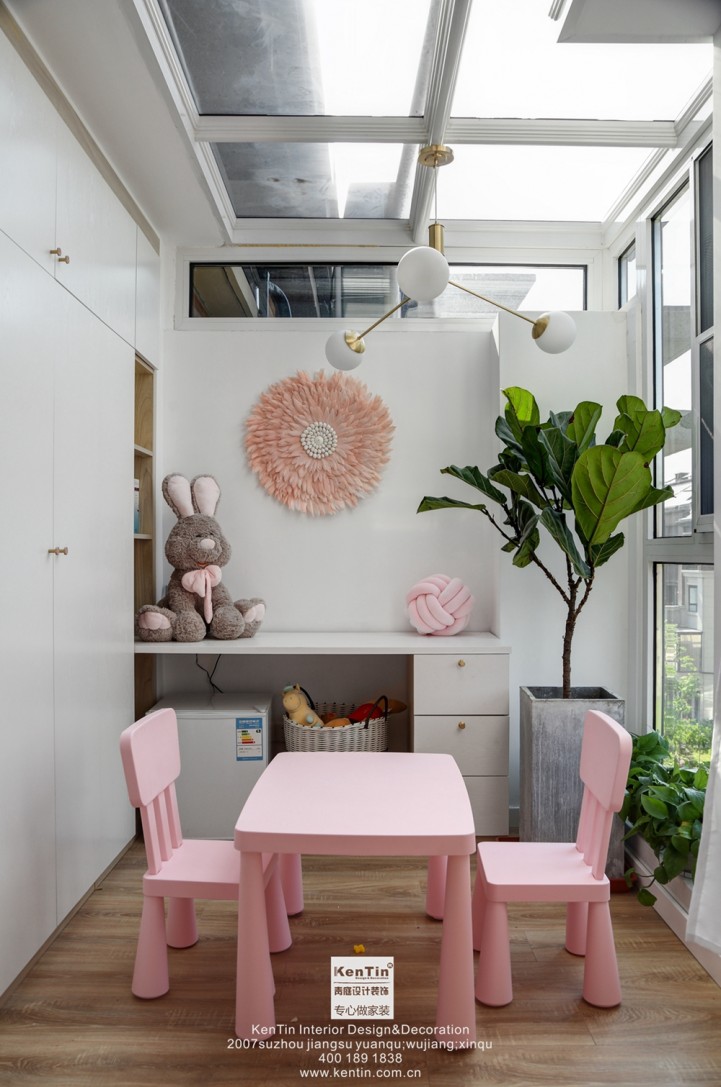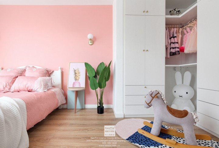 兒童房每個(gè)元素都有著濃郁的公主味。屋主有一對可愛的雙胞胎,除了用粉色滿足小公主的夢想之外,還劃分了玩樂區(qū)域,小公主們的日常行動得到了滿足。