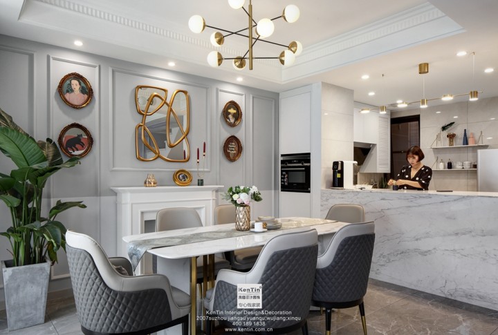 區(qū)域的強(qiáng)烈劃分,讓人遐想主人的理性和智慧。而金屬元素的加入,又不顯單調(diào),身份的尊貴感也顯露無疑。