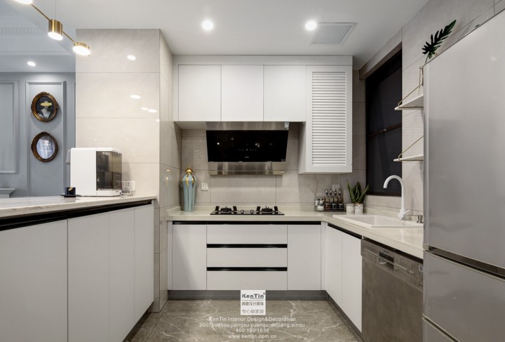 屋主希望自己的房子采光充足,明亮、實(shí)用、個(gè)性??紤]到這些因素,白色元素是一樓墻面和櫥柜最多運(yùn)用的色彩。簡單,時(shí)尚,清爽,自由。