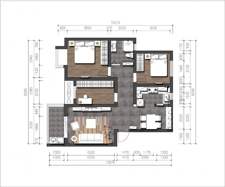 本案是作為婚房準備的,目前小兩口住著,為愛共筑新家。女業(yè)主從事的是平面設計工作,男業(yè)主從事零售行業(yè),愛好攝影,美食。業(yè)主希望家里顏色豐富些,不要太單調,家具體量不要太大,把空間釋放出來,儲物空間要求高,喜歡把家里收拾的很整潔。