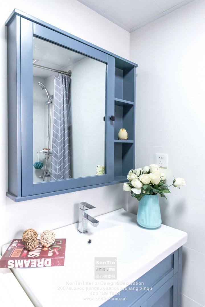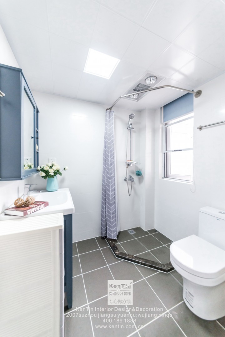 白色的瓷磚配上灰色格子地磚,淺色調的設計讓浴室的整體感覺十分干凈明亮,白色的瓷磚、淺灰色格子的地磚,搭配顏色稍深的柜子,打造舒適的視覺效果。干濕分離的設計,在居家生活中,可以避免很多問題的發(fā)生,打造一個干凈舒適的家。