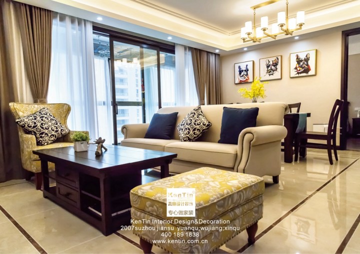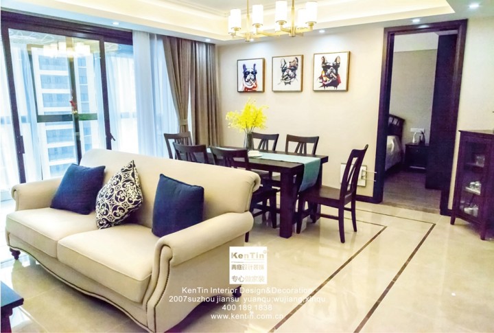 布藝沙發(fā)和實木家具是簡美風(fēng)格的一貫追求,簡約大氣,花色的沙發(fā)溫馨之余帶有一絲俏皮,落地窗的設(shè)計保證了良好的采光度,簡潔明亮。客餐廳一體的設(shè)計,寬敞明亮,協(xié)調(diào)的顏色更顯空間感和整體感。