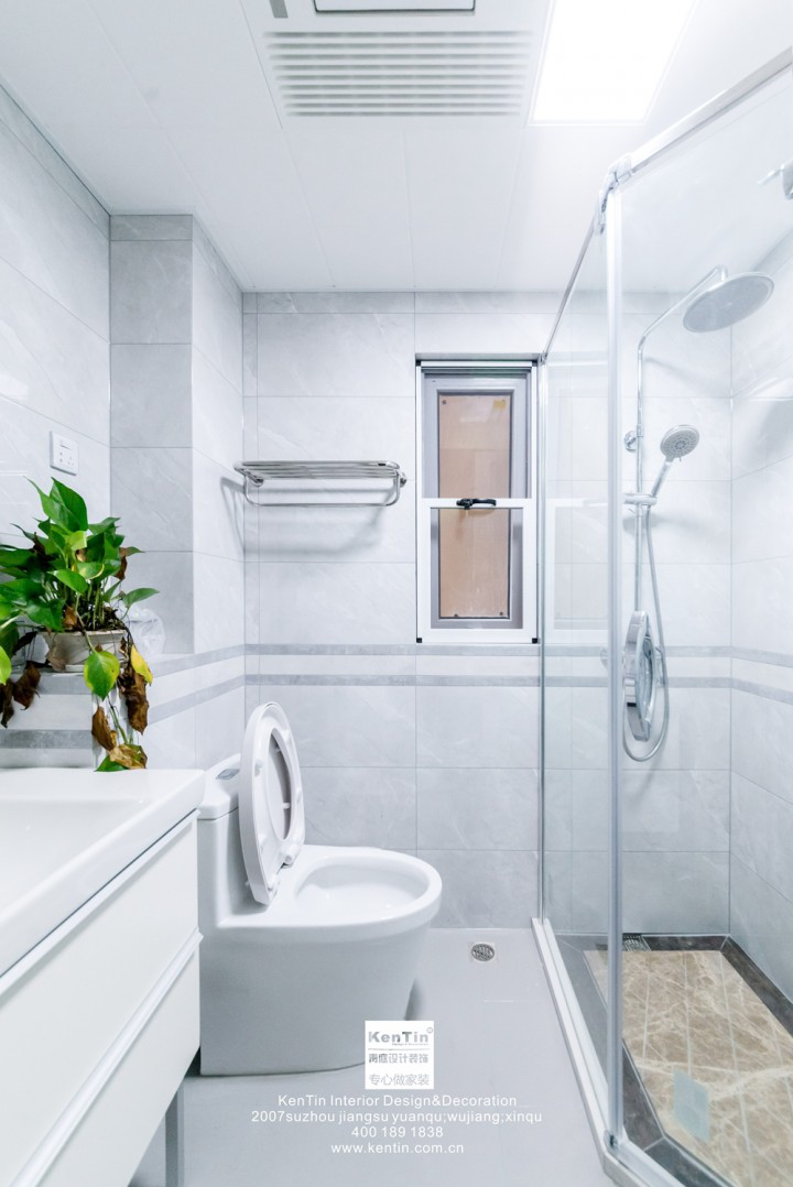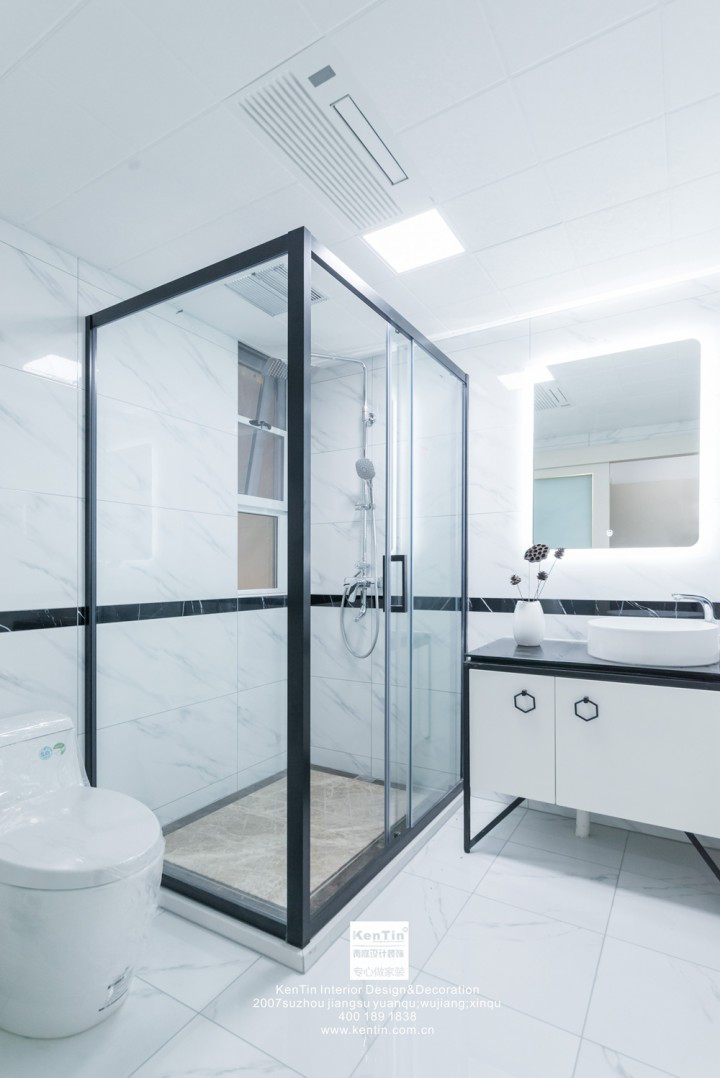 衛(wèi)生間用移門區(qū)分干濕區(qū)域,美觀且節(jié)省空間。透明玻璃設計,讓人即使身處淋浴空間,視野也不會受到局限,沒有壓抑感。三出水淋浴柱,適合各種情景下的用水需求,方便自由。依舊使用黑白配的設計,經(jīng)典大氣。