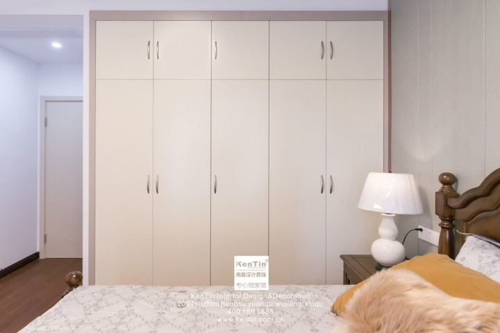 臥室的儲物柜與床同寬,與墻同高,實用性強,可以更方便快捷的歸納整理衣物。嵌入式柜體,極大地節(jié)約了空間使用率,讓空間更寬敞明亮。柜體的設計也很簡單精致,屬于耐看型。