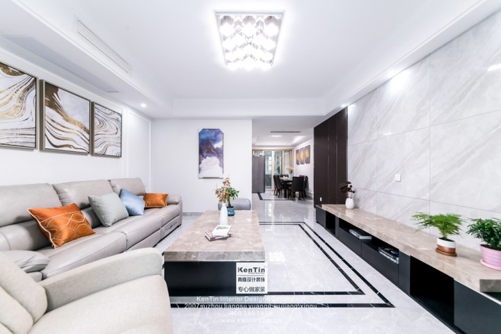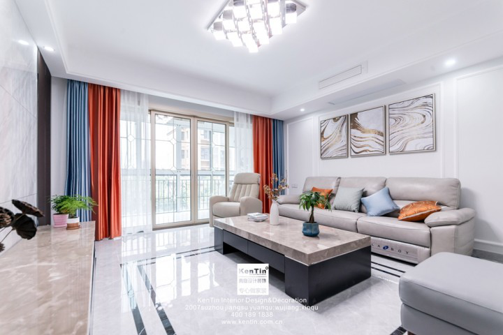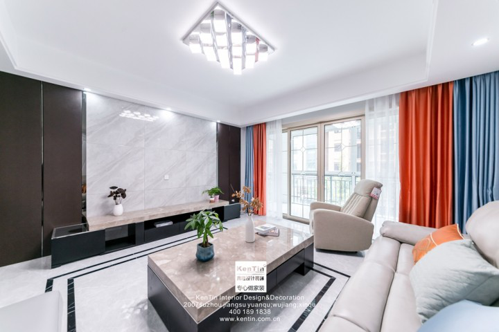 黑白配的設計,簡單大方,彩色的窗簾將整個空間點綴的更加精致。茶幾桌、電視柜上擺放的綠植、裝飾品為空間增添了生的氣息,更加青春洋溢。無論是桌柜,還是沙發(fā)、地板,都非常有質(zhì)感,體現(xiàn)了主人不俗的品味。