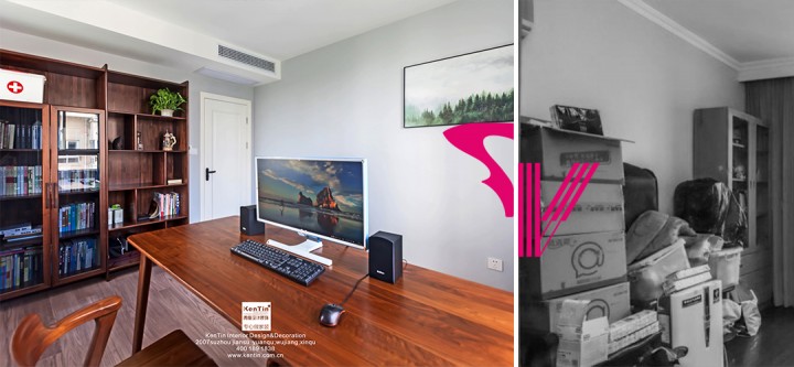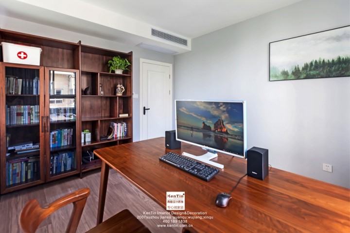屋主比較注重學(xué)習(xí)環(huán)境,在對(duì)書房的設(shè)置上,非常重視。裝飾品與客廳一致,家具色調(diào)與客餐廳一致,注重木質(zhì)品質(zhì)。簡(jiǎn)單處理工作,或是讀一本書,都是放空的一種方式。