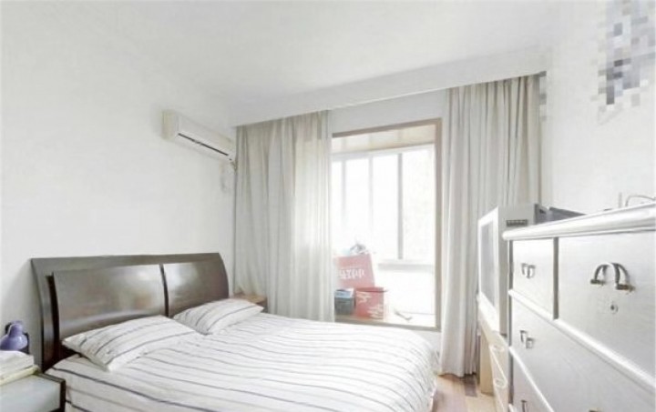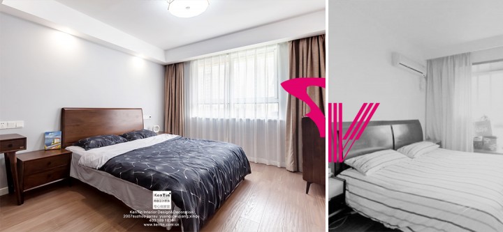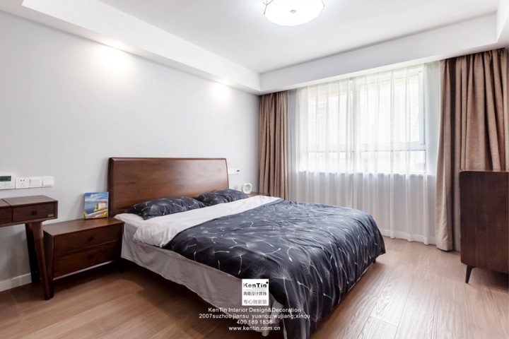 主臥空間非常簡(jiǎn)單,吊頂無過多造型,燈具并不復(fù)雜,梳妝臺(tái)設(shè)置簡(jiǎn)單大方。滿足了屋主要求:舒適、溫馨。
