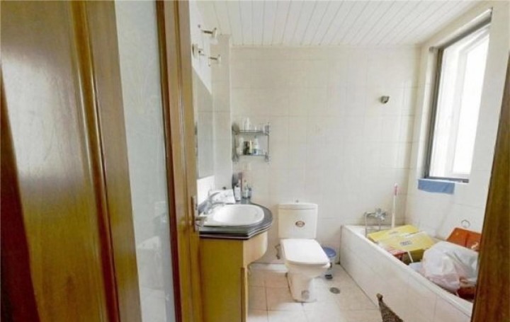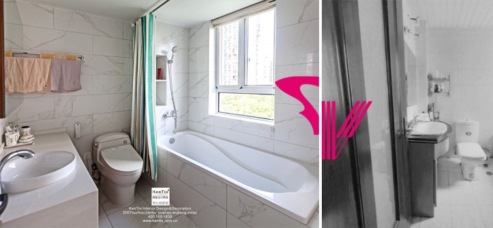 拆除原始狹小的衛(wèi)生間(上圖左下邊紅線框處),將其位移到原樓梯處