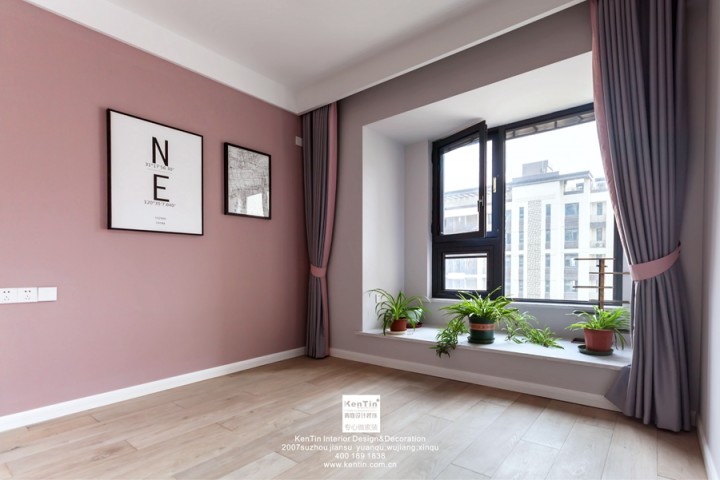 新家的常住人口目前只有業(yè)主一人,次臥暫時(shí)未做過(guò)多裝飾。粉色和灰色碰撞的墻壁時(shí)尚亮眼,掛畫(huà)是代表某個(gè)地方的地理坐標(biāo),具有特殊的意義。